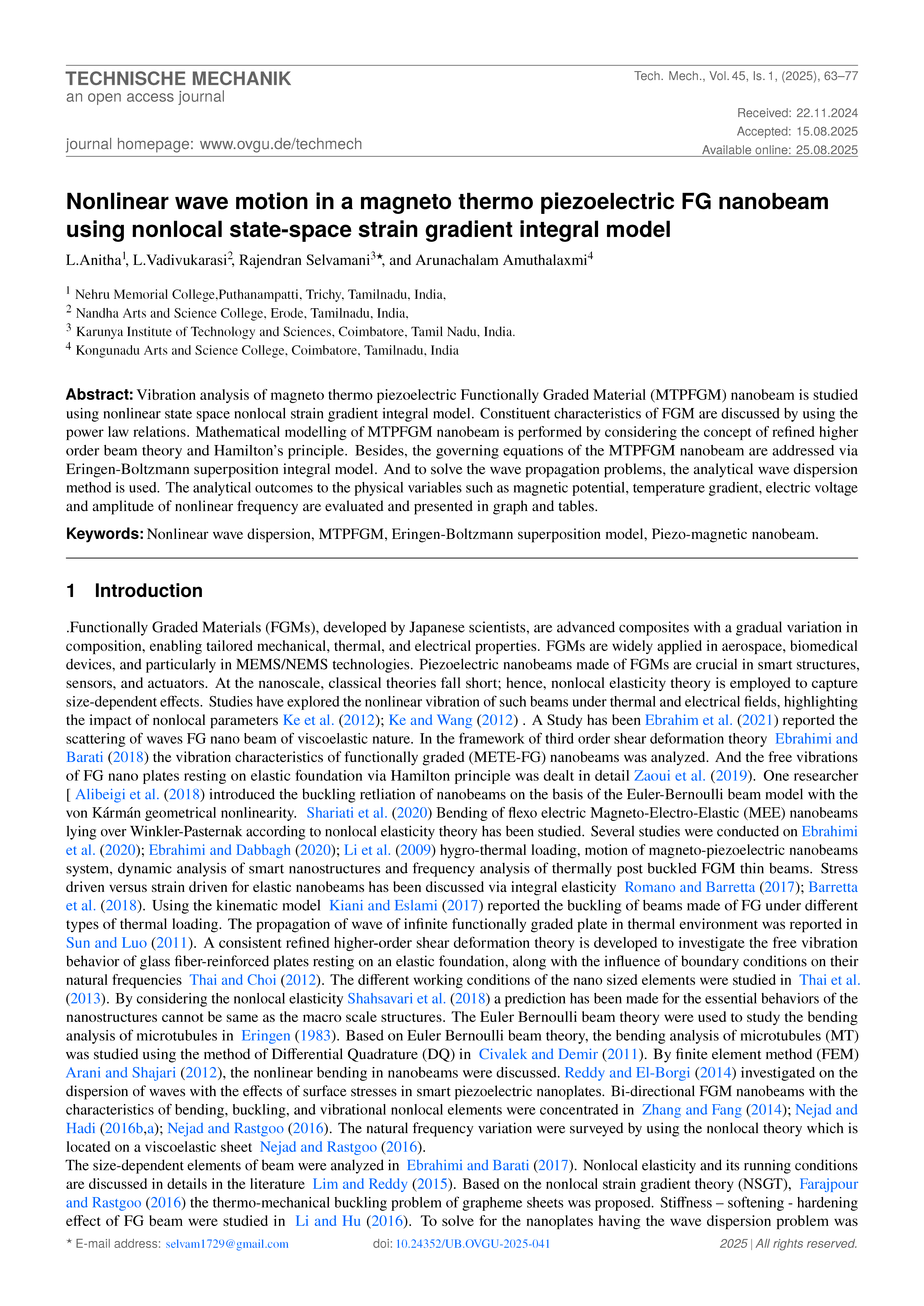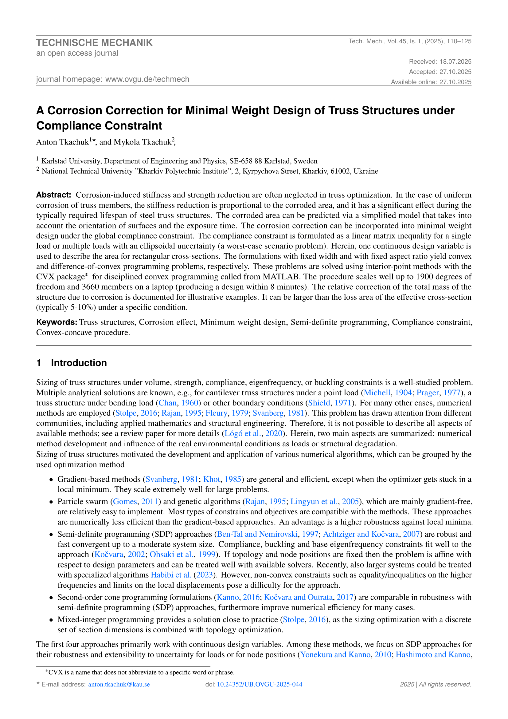 The journal is edited by Magdeburger Verein für Technische Mechanik e.V. and Otto von Guericke University Magdeburg
